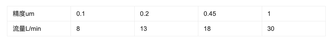 过滤精度:0.1、0.2、0.45、1(um)