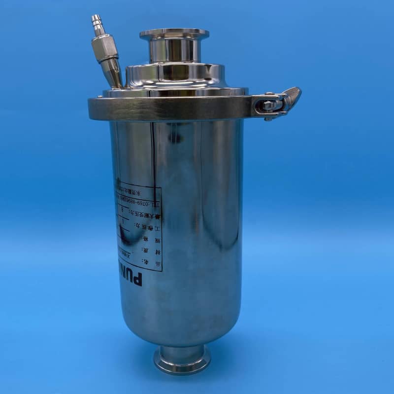 滤壳项部配有压力表、排气嘴,底座上配有排污、取样阀,单芯316L外壳顶部大口径配置,便于滤芯注水湿润,方便易操作,进出口管径大小、连接力式有多种规格可供选择,优化设计结构合理、无死角,残留量少,减少染菌的可能性